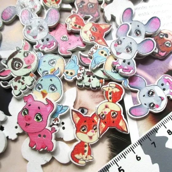 Conjunto de 5 botões com desenhos relacionados com mochos.