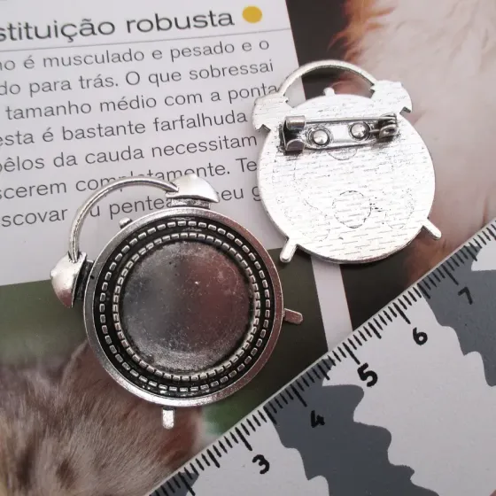 Pendente relógio com base, no verso, para cabochon de 25mm.
