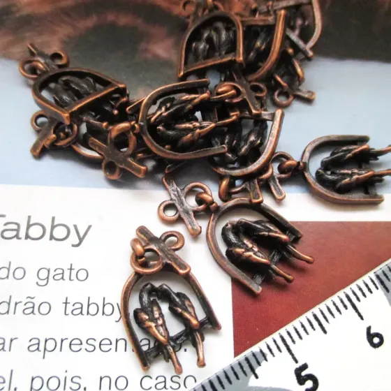 101,08 € https://ogatohobby.com/revenda/61572-lote-10-pendentes-relogios-ec270ptr.html">Lote 12 Pendentes Pássaro -... PreçoLote 12 pendentes metal com casal de pássaros.