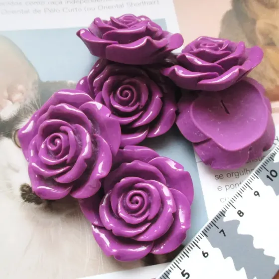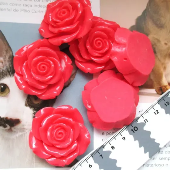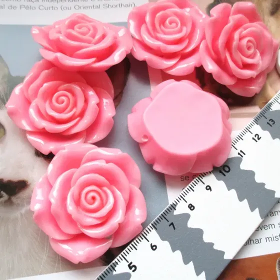 6Lote com 6 flores em plástico com furo para passar fio. Ideal para bandoletes, bijuteria,...
