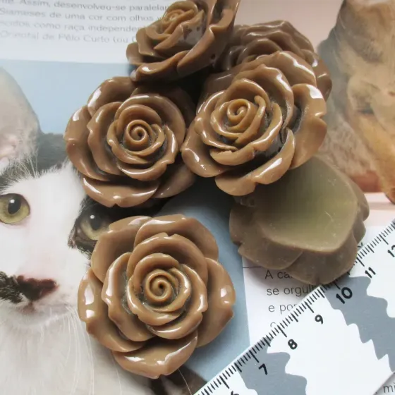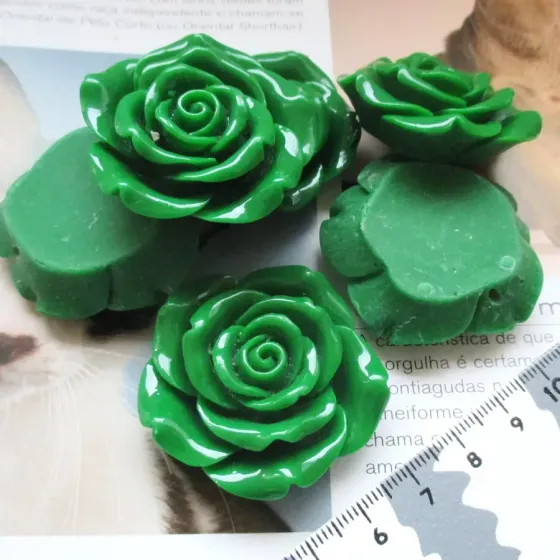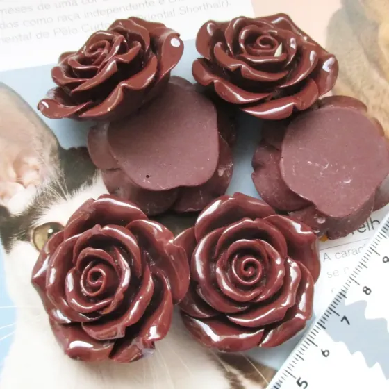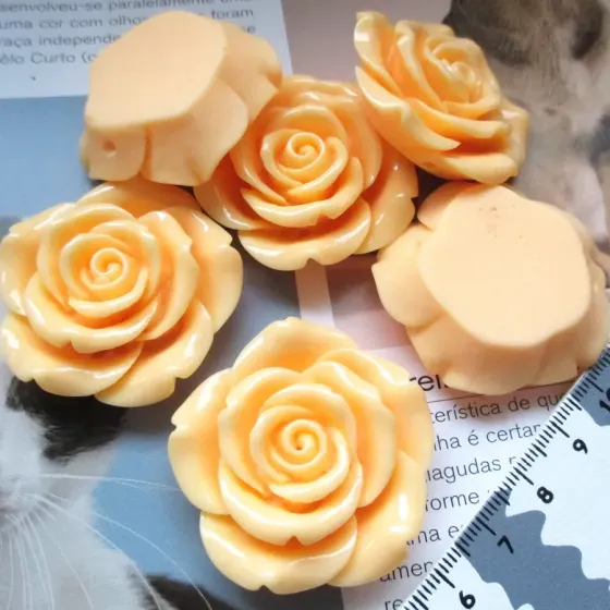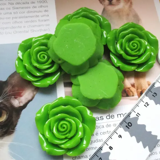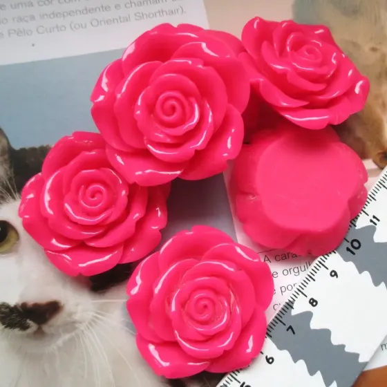 3Lote com 6 flores em plástico com furo para passar fio. Ideal para bandoletes, bijuteria,...