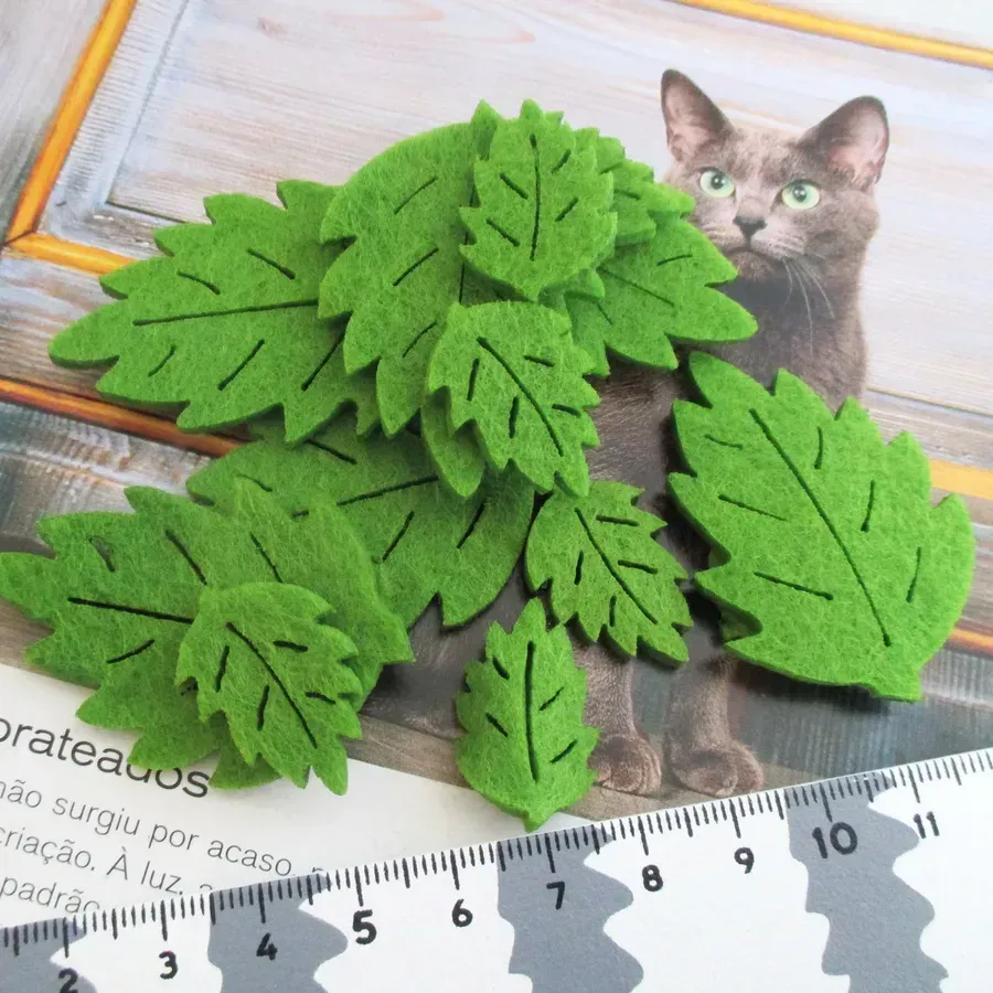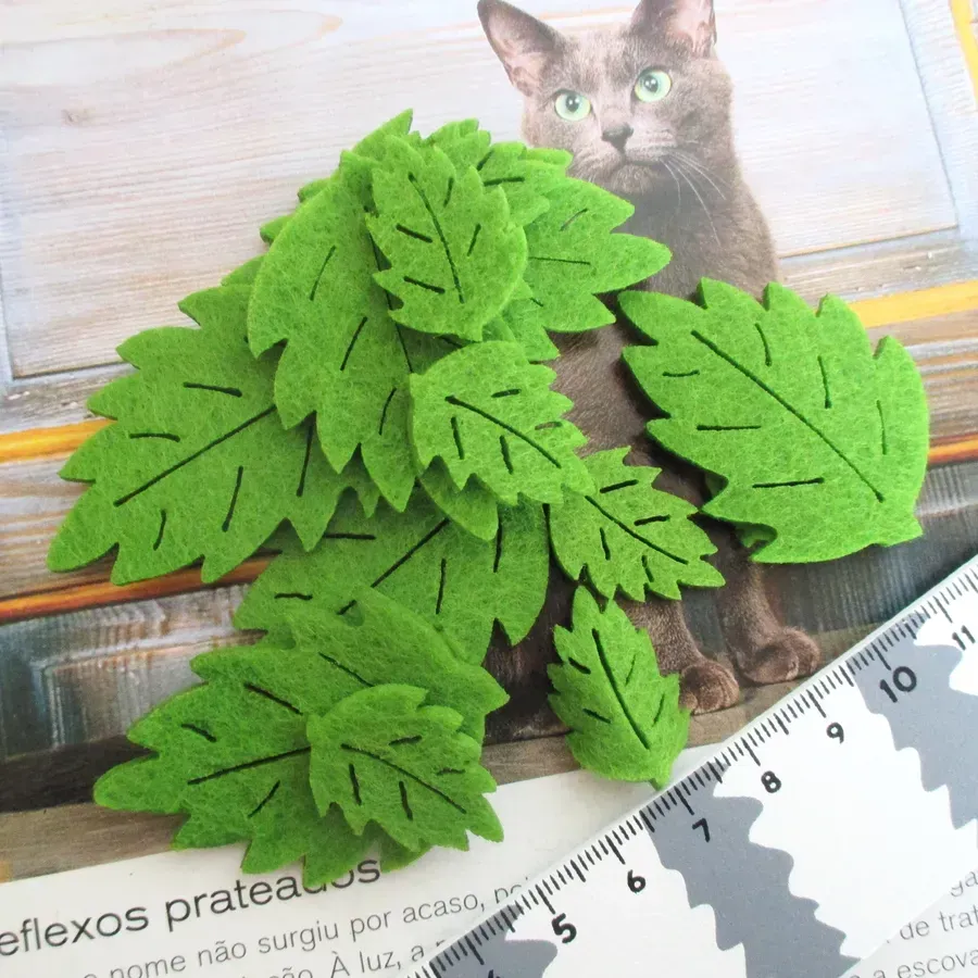 Conjunto de 15 aplicações em feltro em forma de folhas.