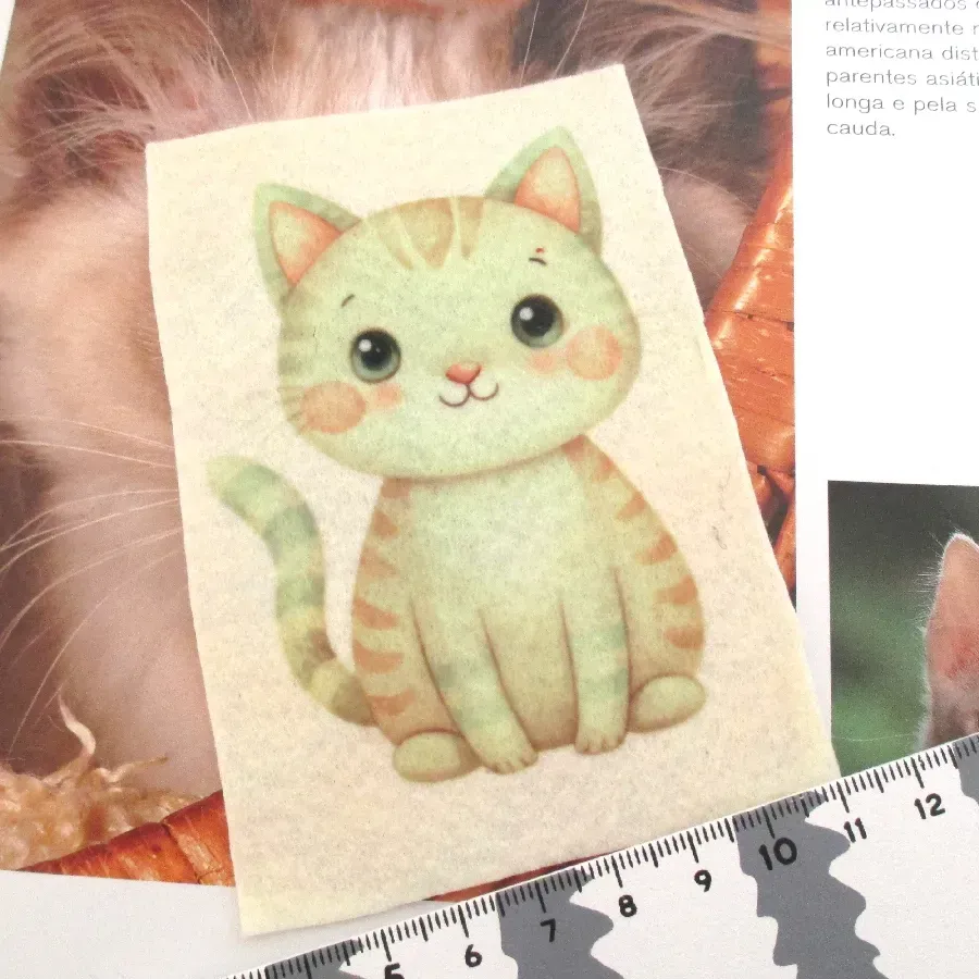 Aplicação em feltro com gatinho estampado. Ideal para decorar trabalhos artesanais.