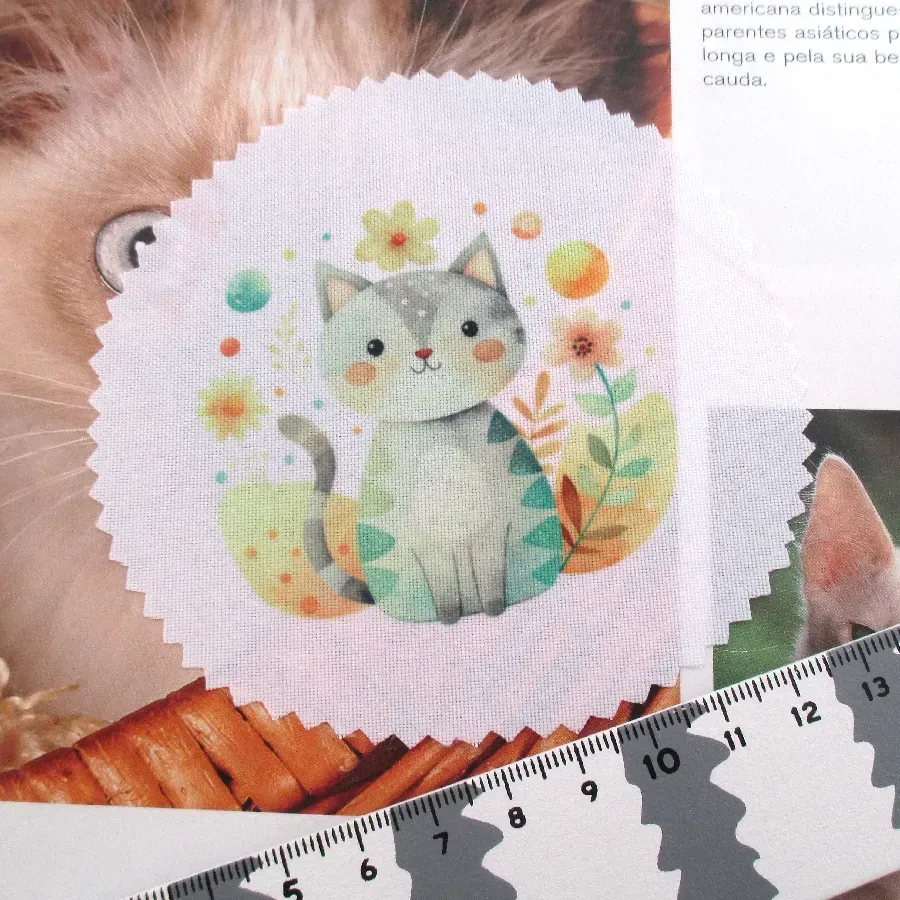 Aplicação em tecido estampada. Ideal para decorar trabalhos artesanais.