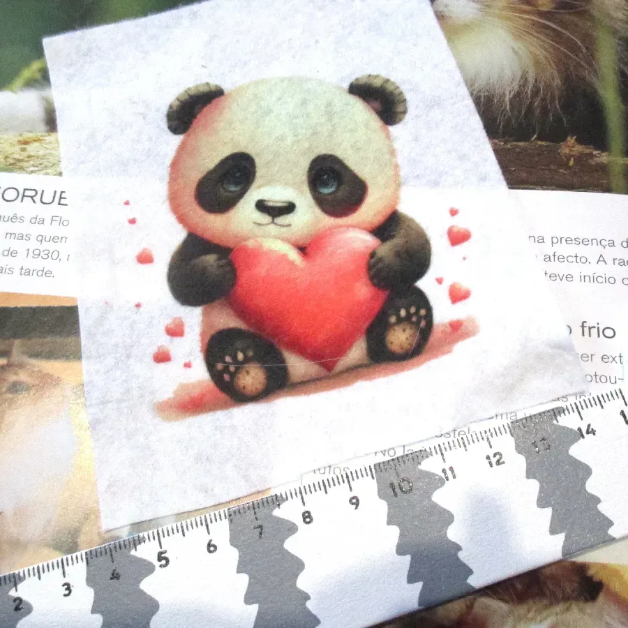 Aplicação em feltro com panda estampado. Ideal para decorar trabalhos artesanais.