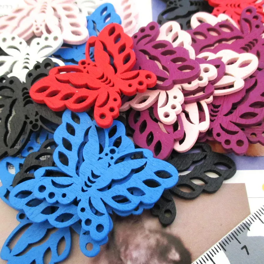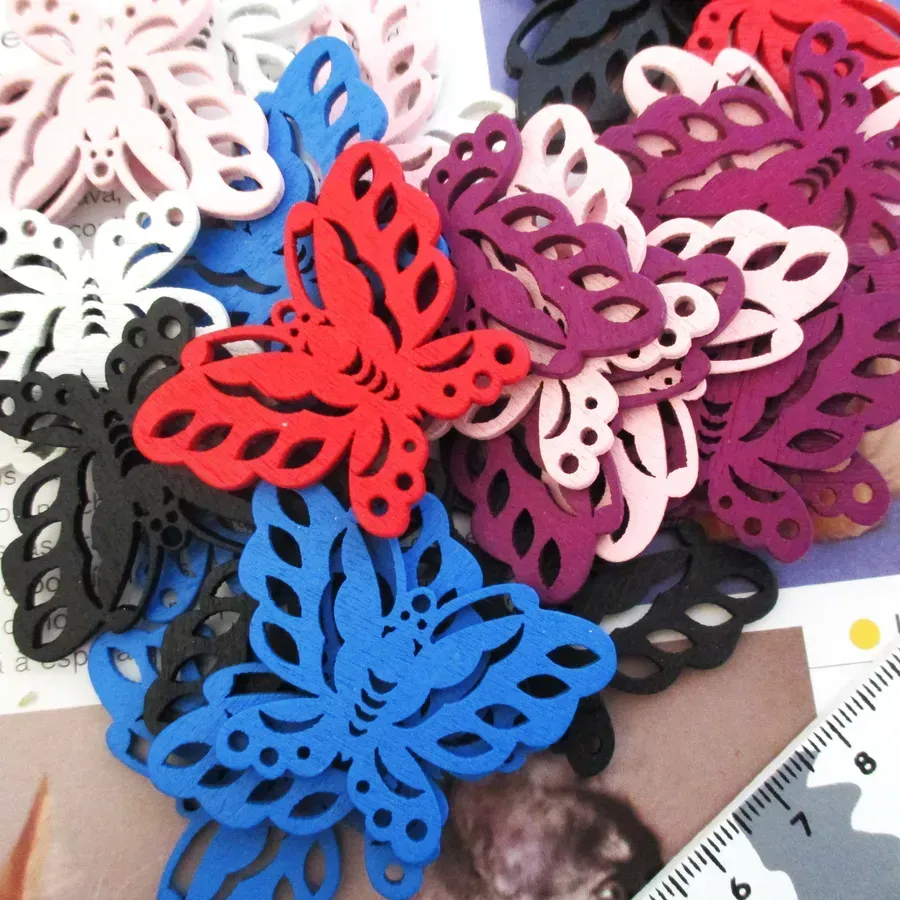 Conjunto de 45 aplicações de madeira em forma de borboleta.