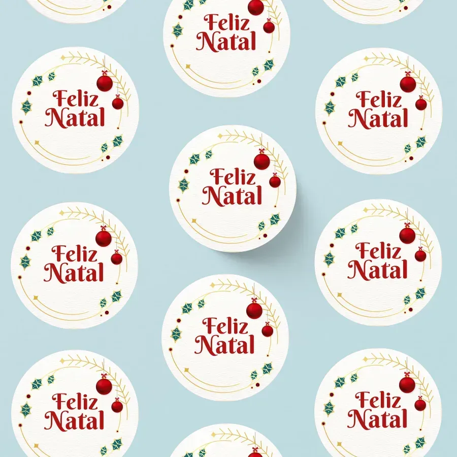 Conjunto de 6 autocolantes com inscrição "Feliz Natal".