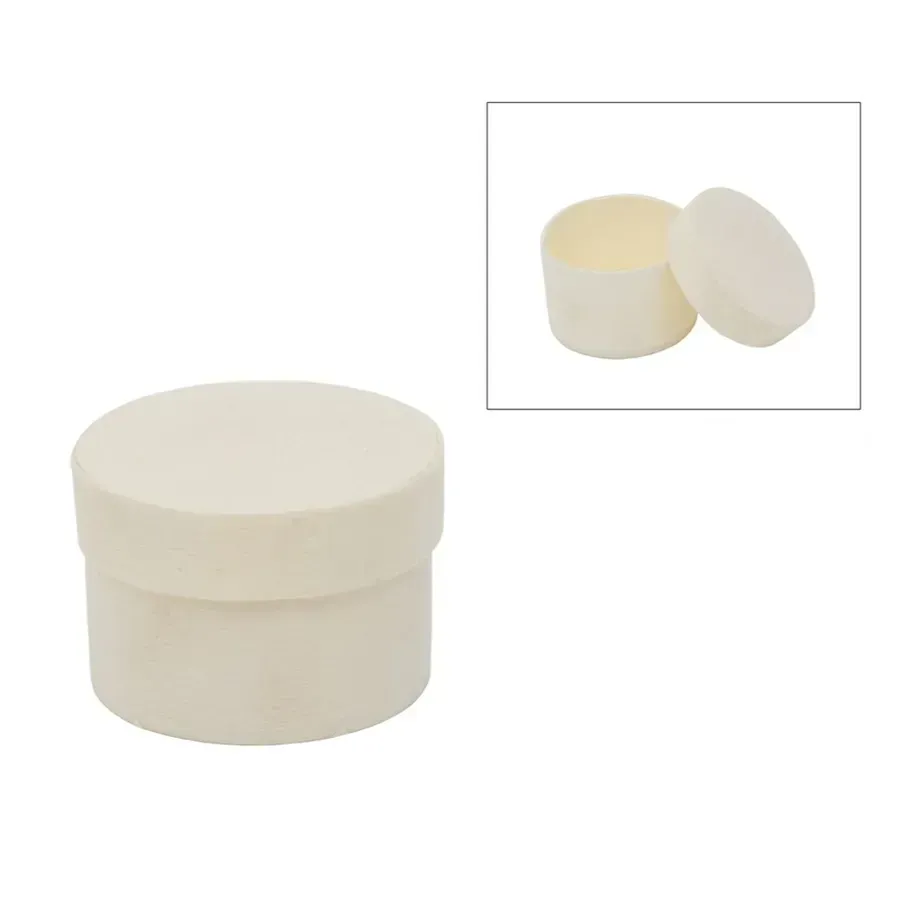 Caixa de balsa redonda com tampa de encaixe para decorar.