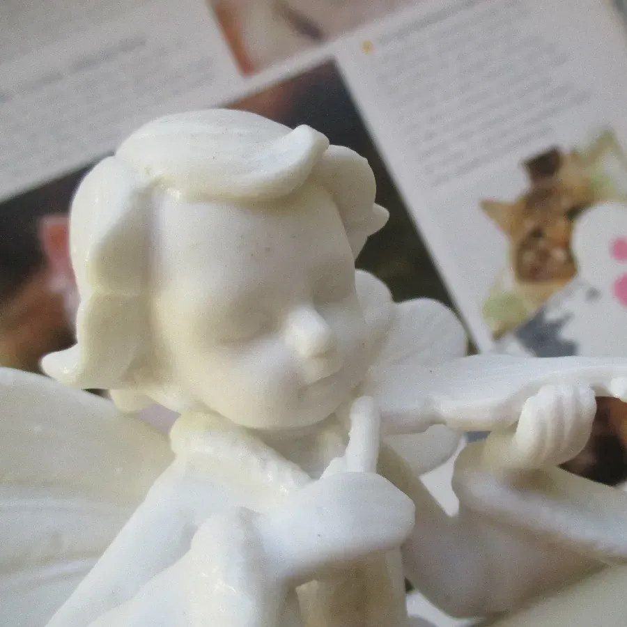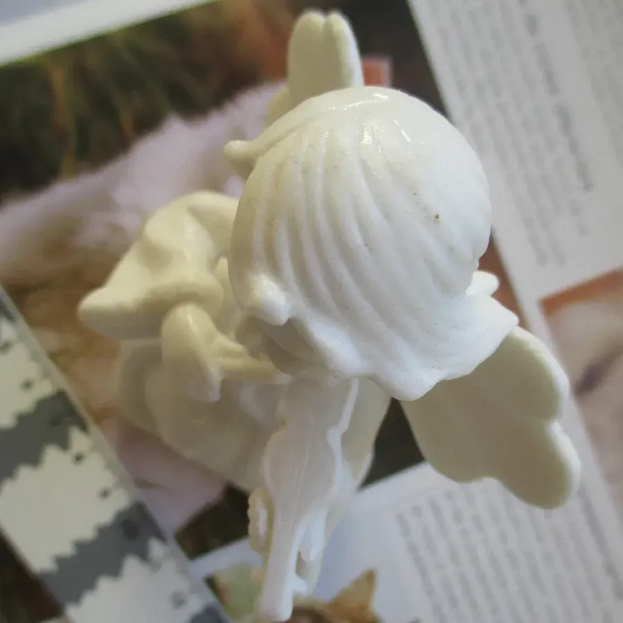 Anjo em biscuit de porcelana. Peça com algumas marcas visíveis nas fotografias.