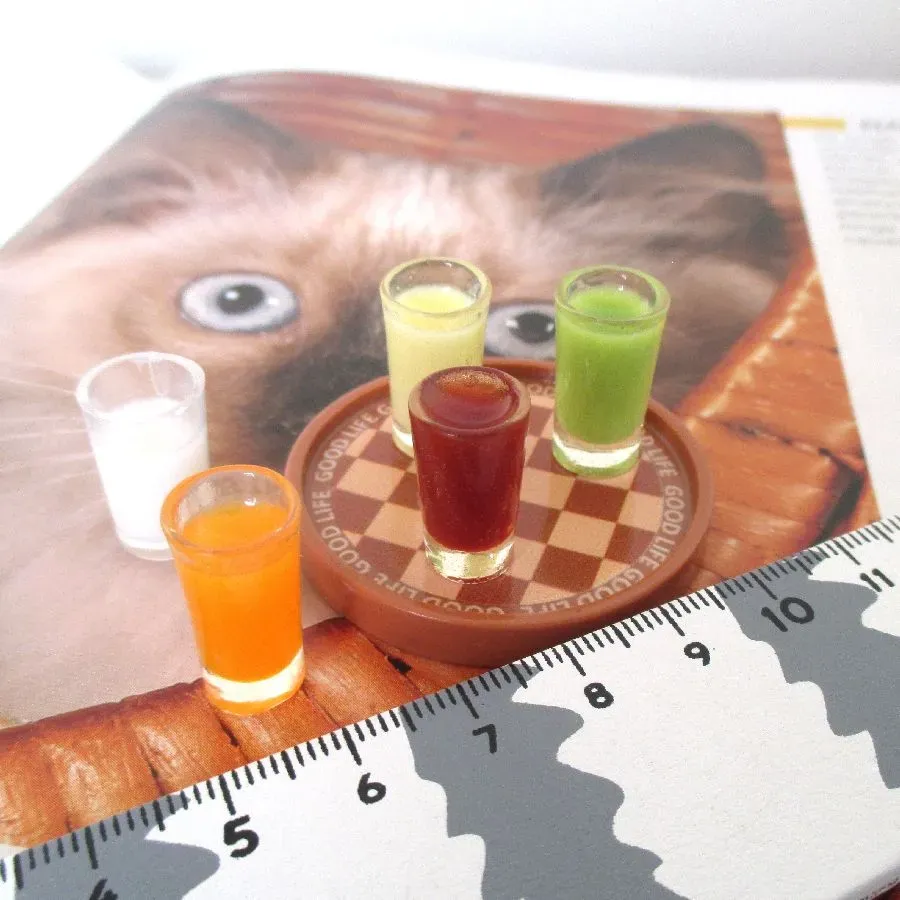 Miniatura tabuleiro com cinco copos.
