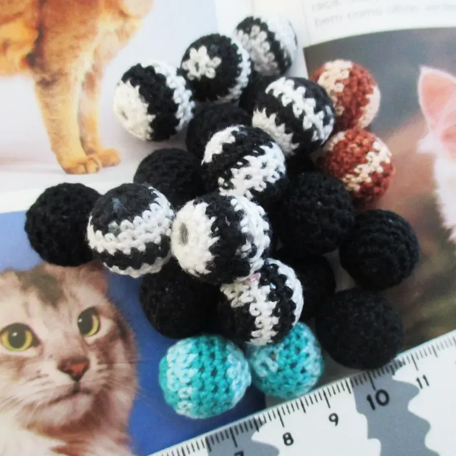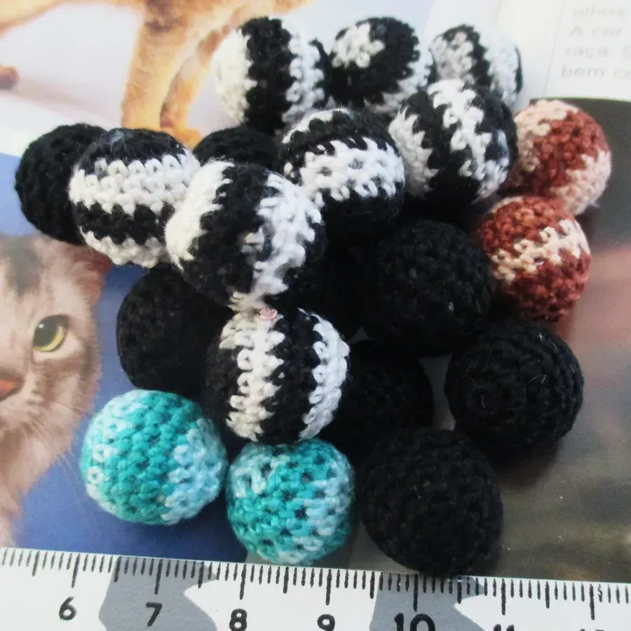 Conjunto de 22 contas revestidas a crochê.