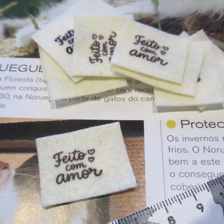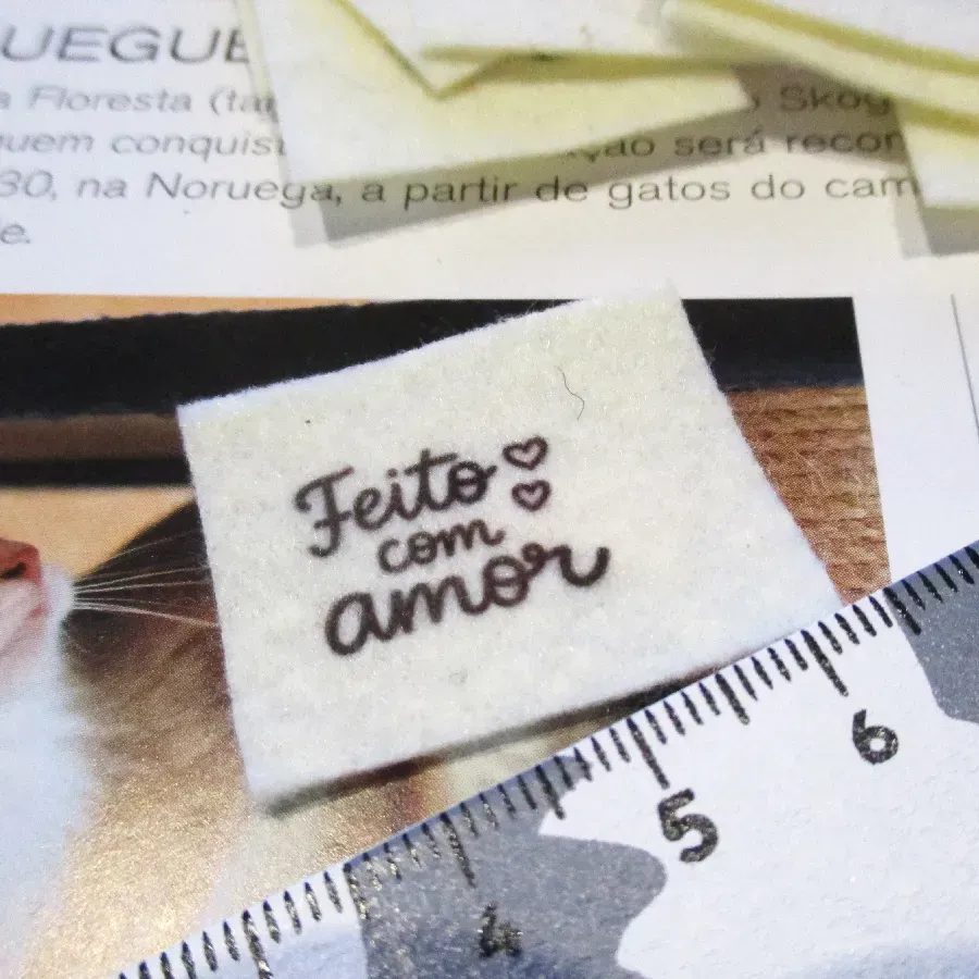 Aplicação em feltro sublimada com texto. Vendida à unidade.