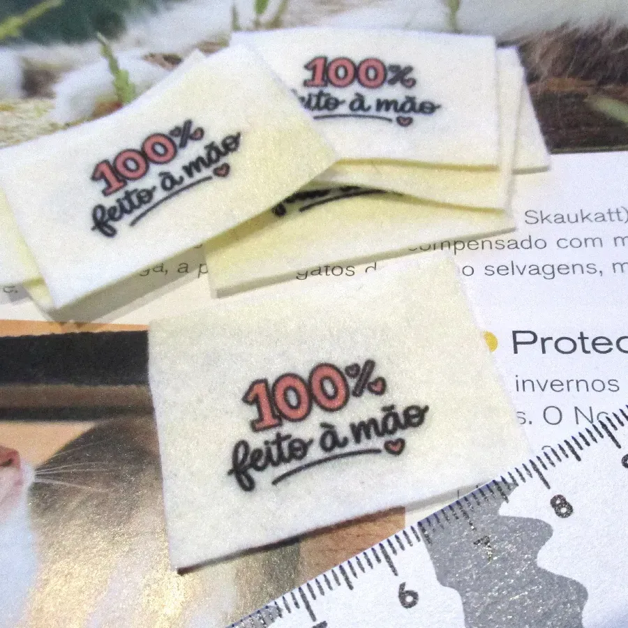 Aplicação em feltro sublimada com texto. Vendida à unidade.