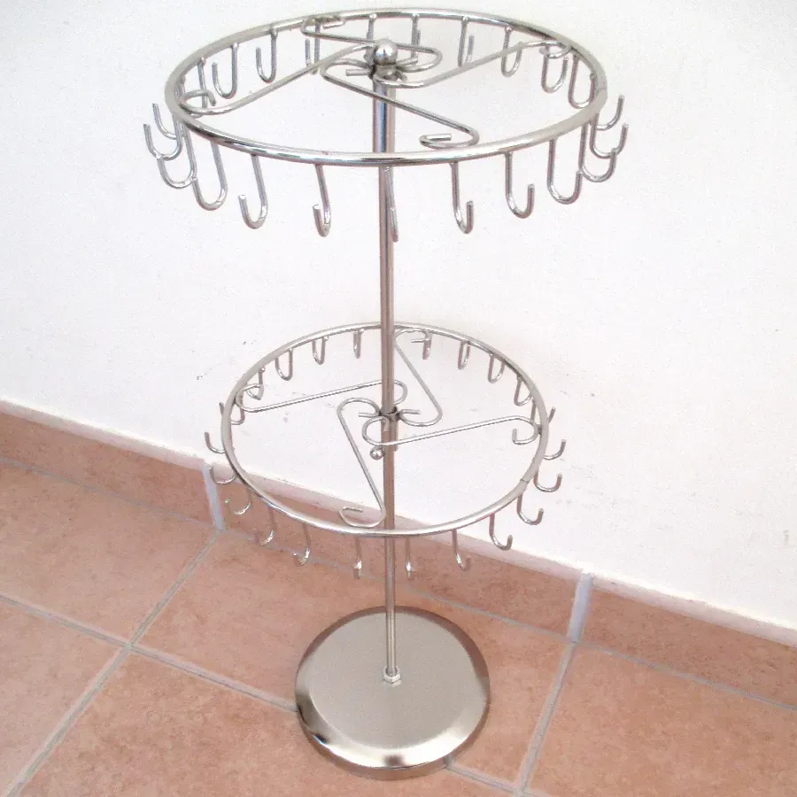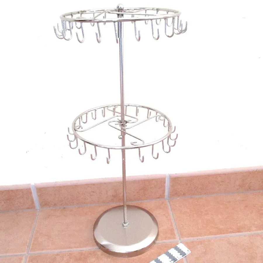 Expositor rotativo prateado. Pode ser usado para colares ou porta chaves.