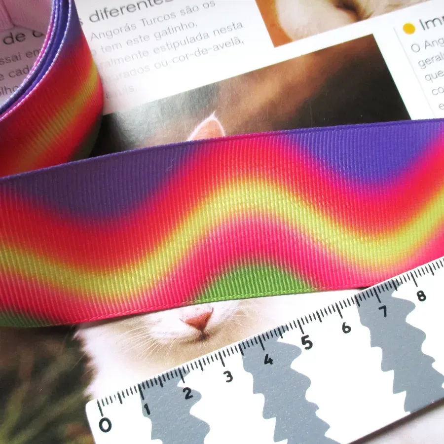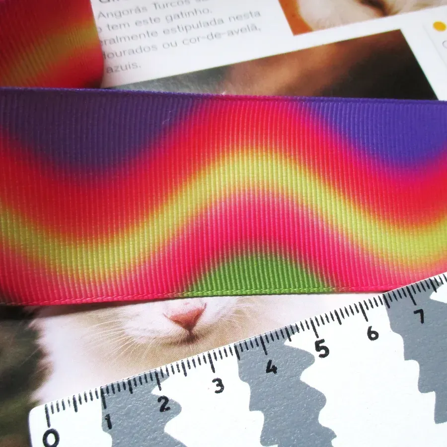 Fita gorgurão com padrão colorido.