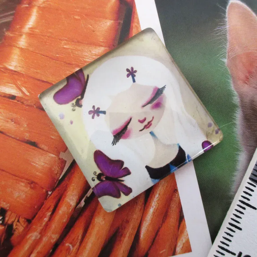 Cabochon em vidro com desenho.