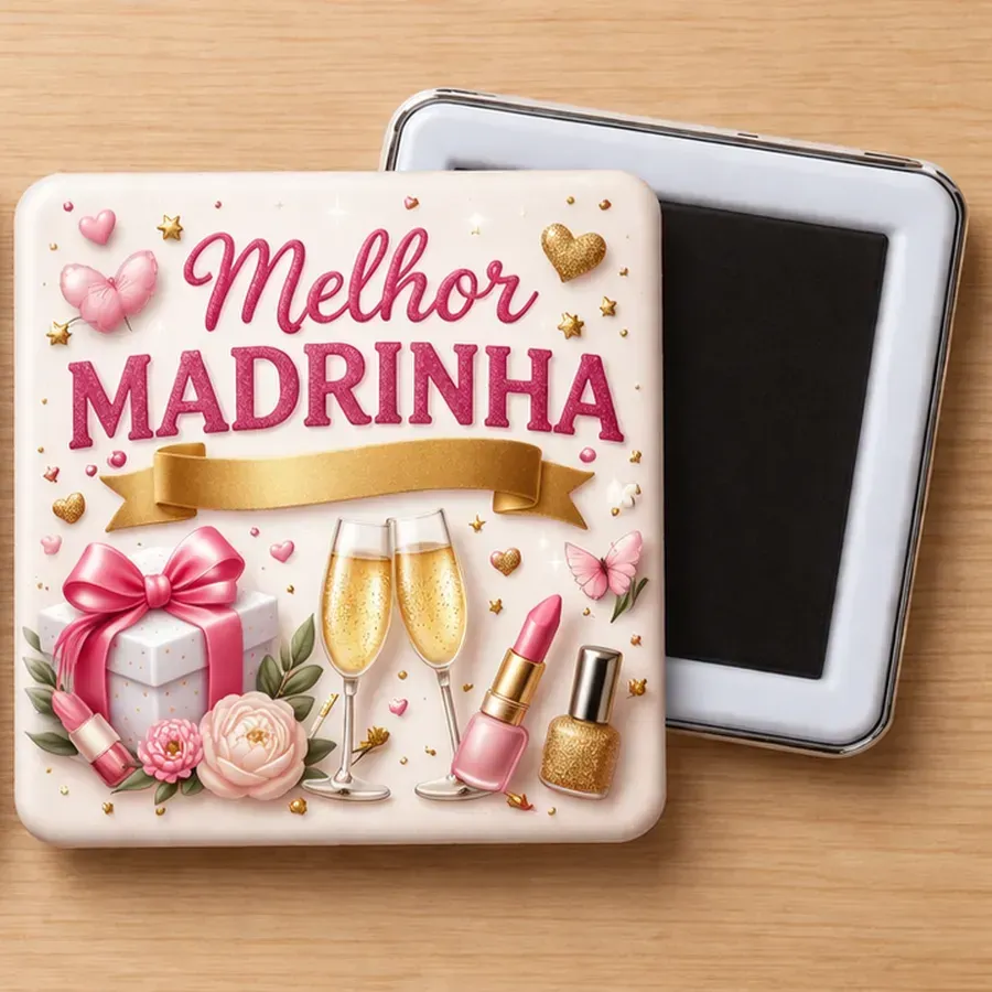Íman quadrado (50mm). Tema Madrinha.
