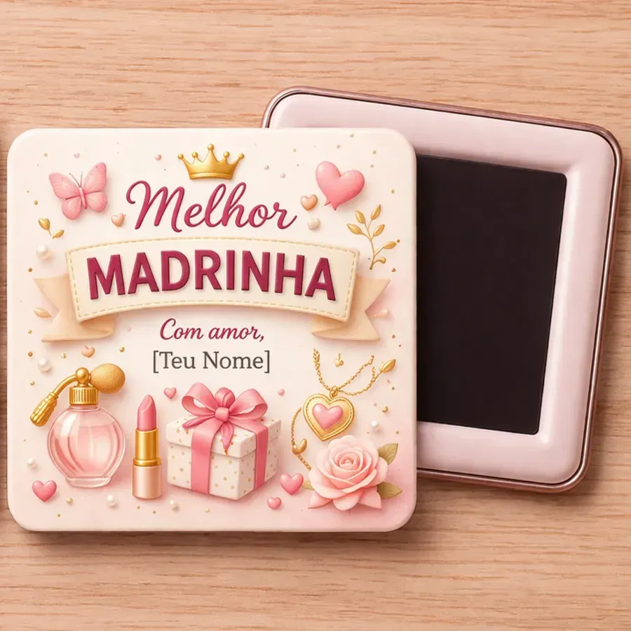 Íman quadrado (50mm). Tema Madrinha.