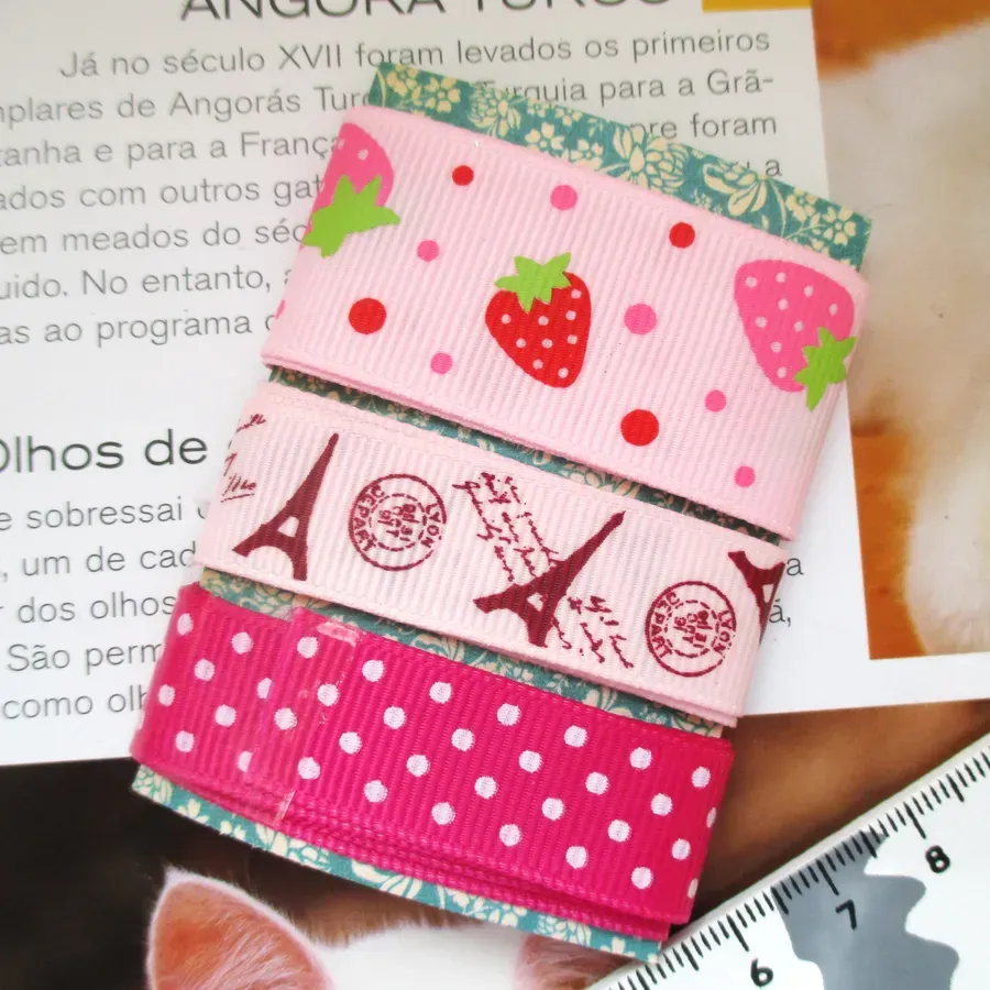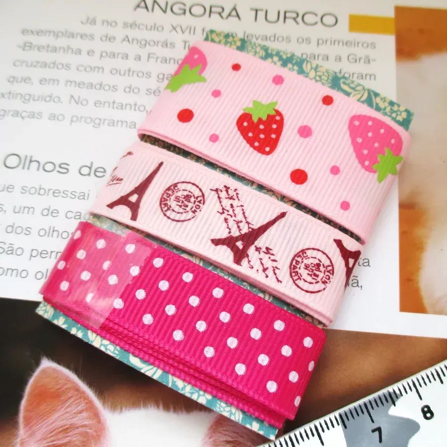 Conjunto de 3 fitas gorgorão com aproximadamente 45cm de comprimento.