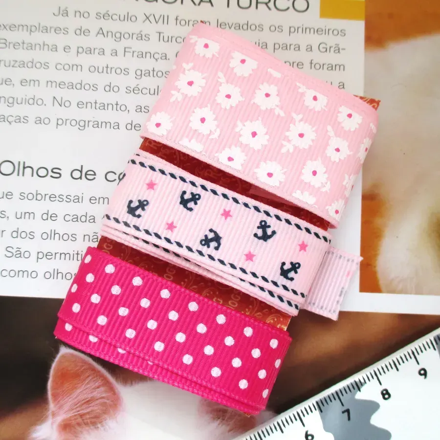 Conjunto de 3 fitas gorgorão com aproximadamente 45cm de comprimento.