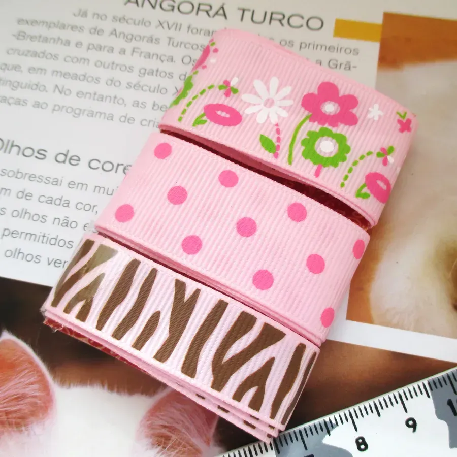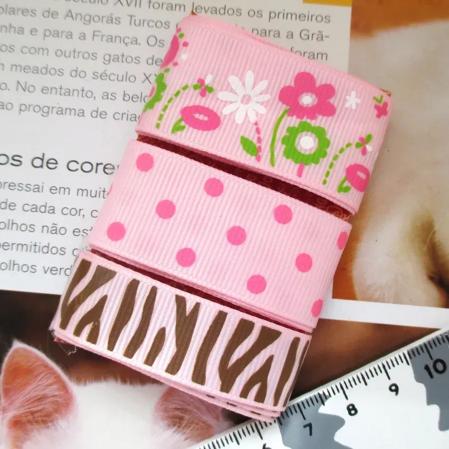 Conjunto de 3 fitas gorgorão com aproximadamente 45cm de comprimento.