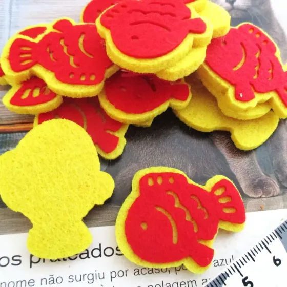 Aplicação em feltro com gatinho estampado. Ideal para decorar trabalhos artesanais.