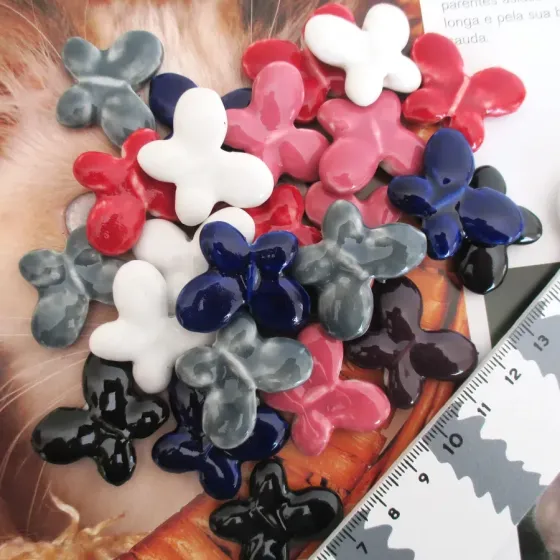 Conjunto de 12 contas em cerâmica em forma de borboleta.