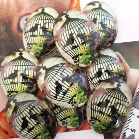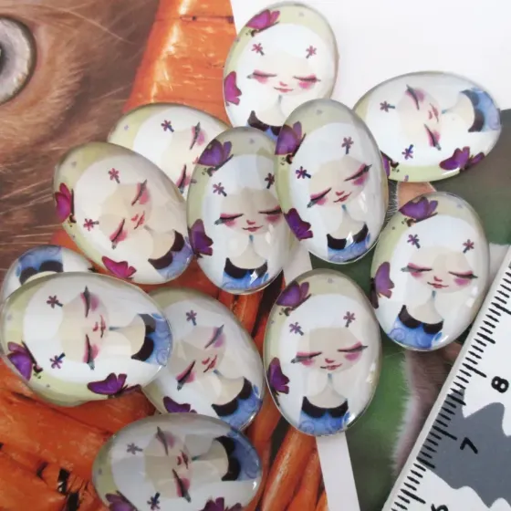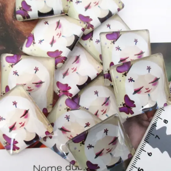Conjunto de 24 contas em vidro em forma de borboleta.