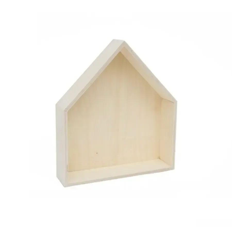 Quadro de madeira em forma de casa.