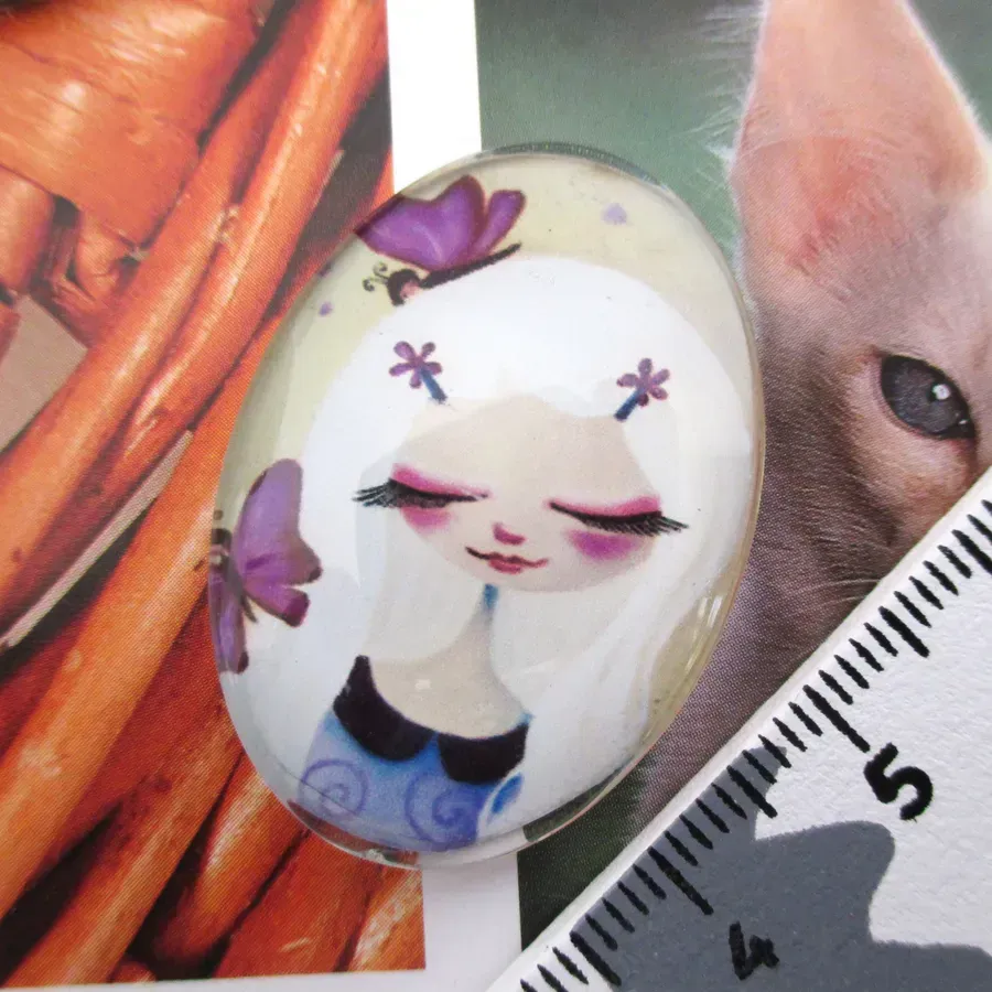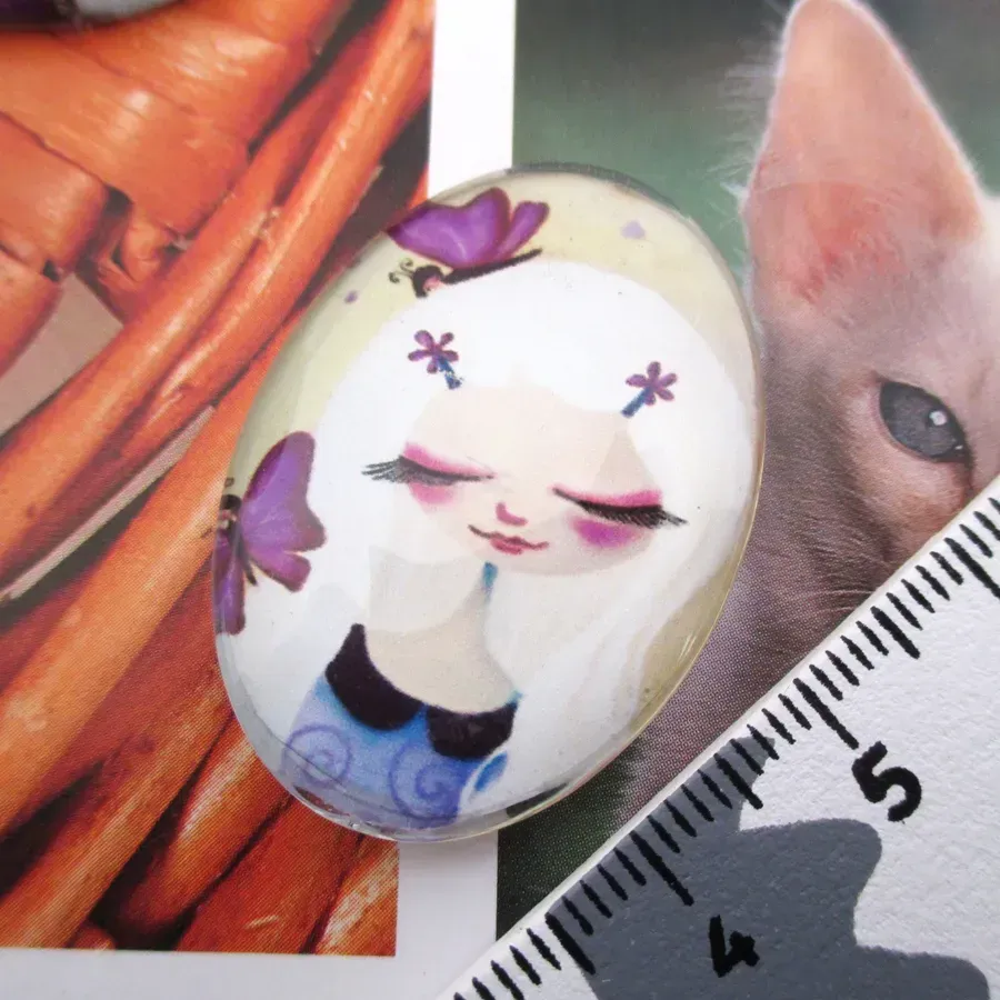 Cabochon em vidro com desenho.