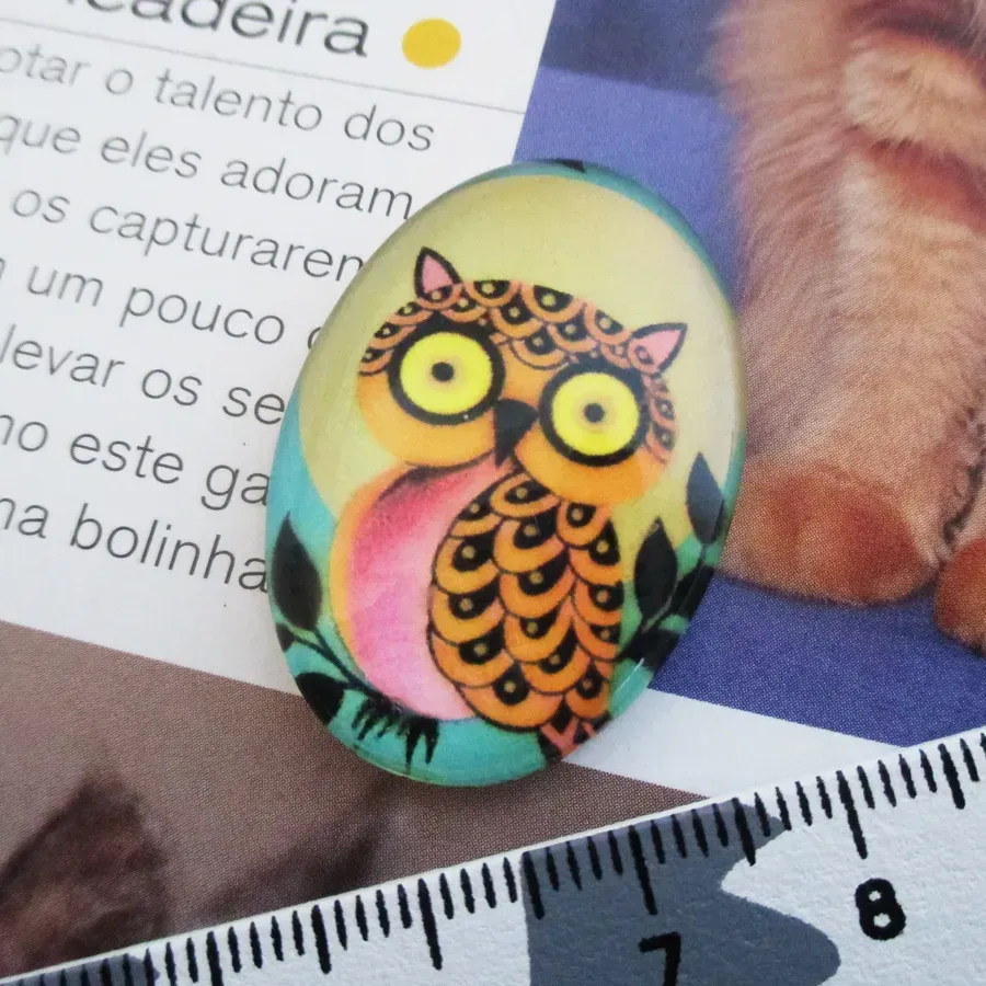 Cabochon em vidro com desenho.