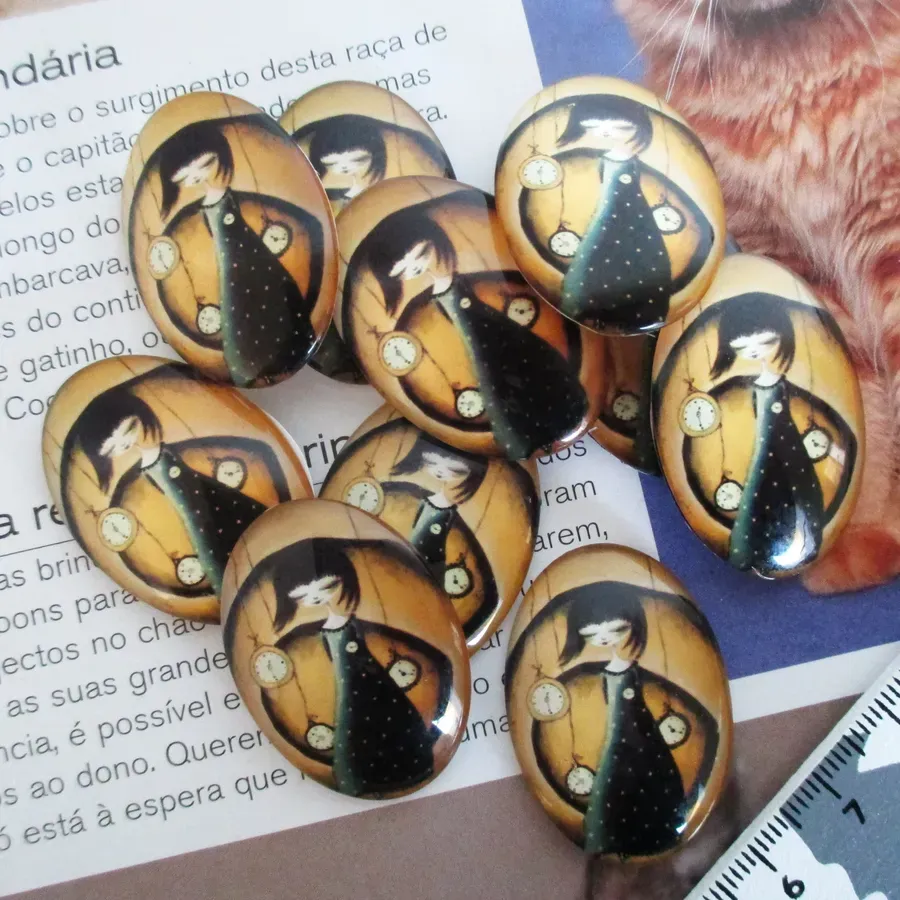 Lote com 8 cabochons em vidro com desenho.
