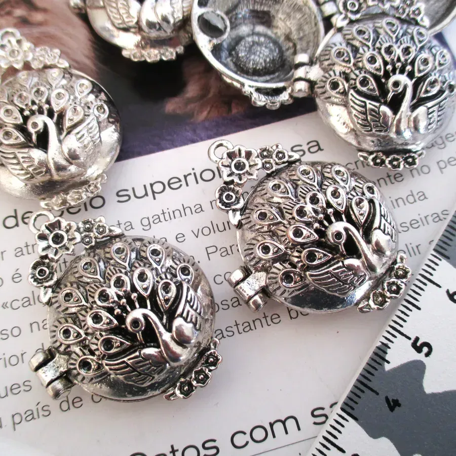 Lote com 5 pendentes com desenho de pássaro / pavão.