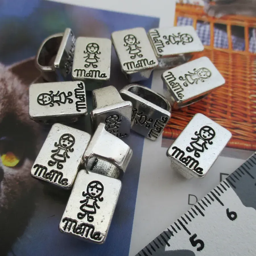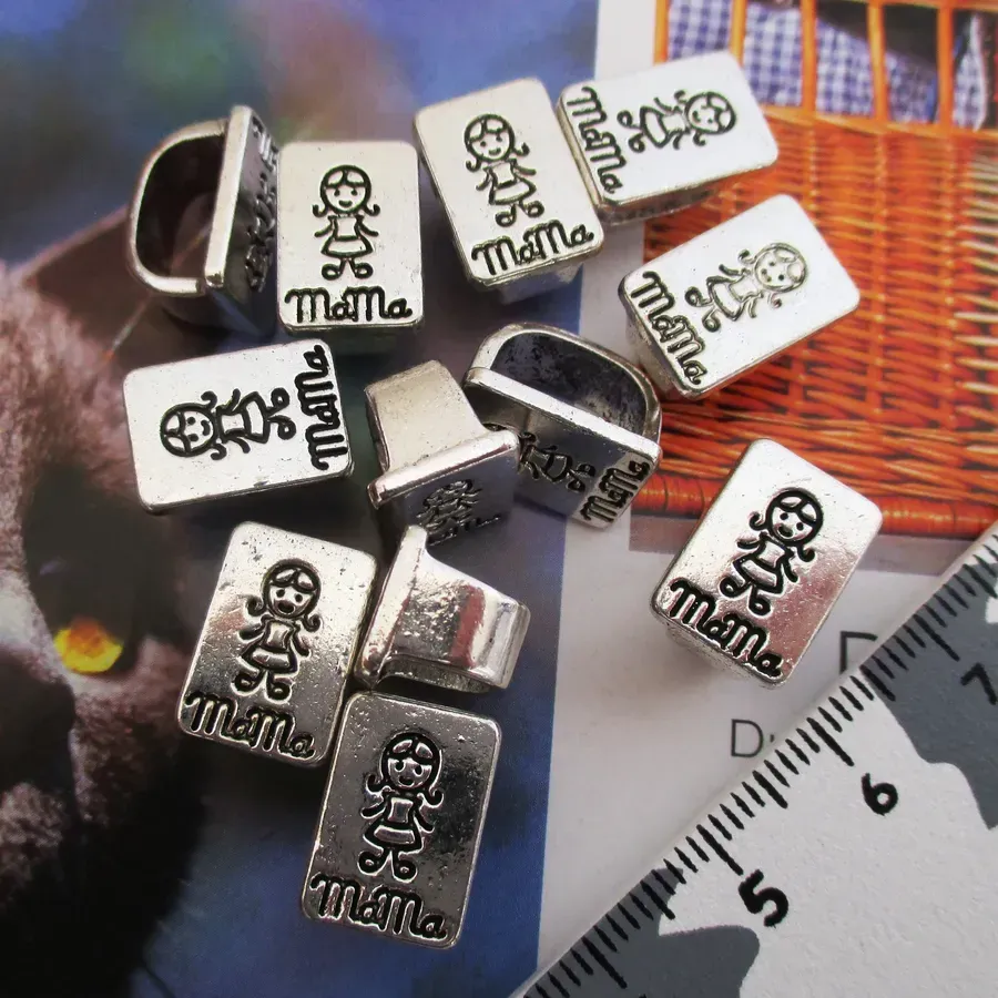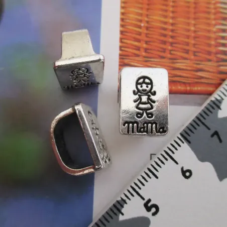 Lote com 20 conta para bijutaria com desenho de menina ou tema Mãe.Cor: Prateado.