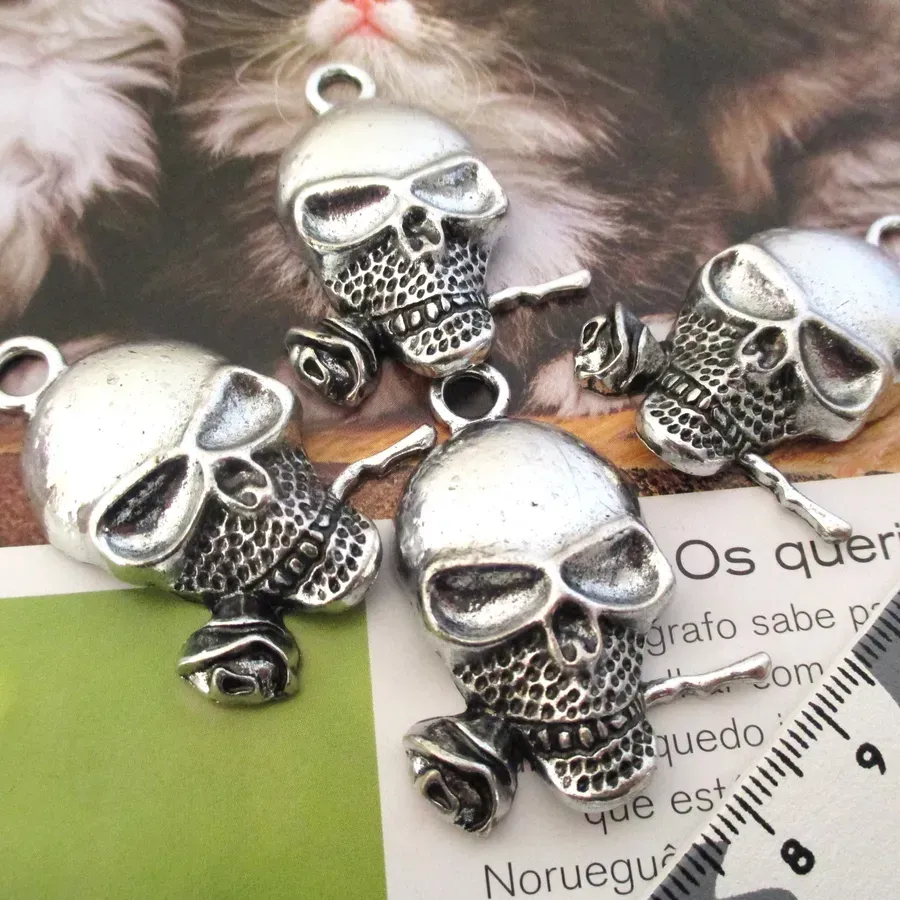 Lote com 4 pendentes em forma de caveira.