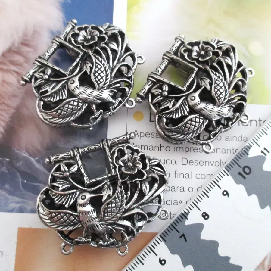 Lote com 3 pendentes em forma de amuleto com pássaro.