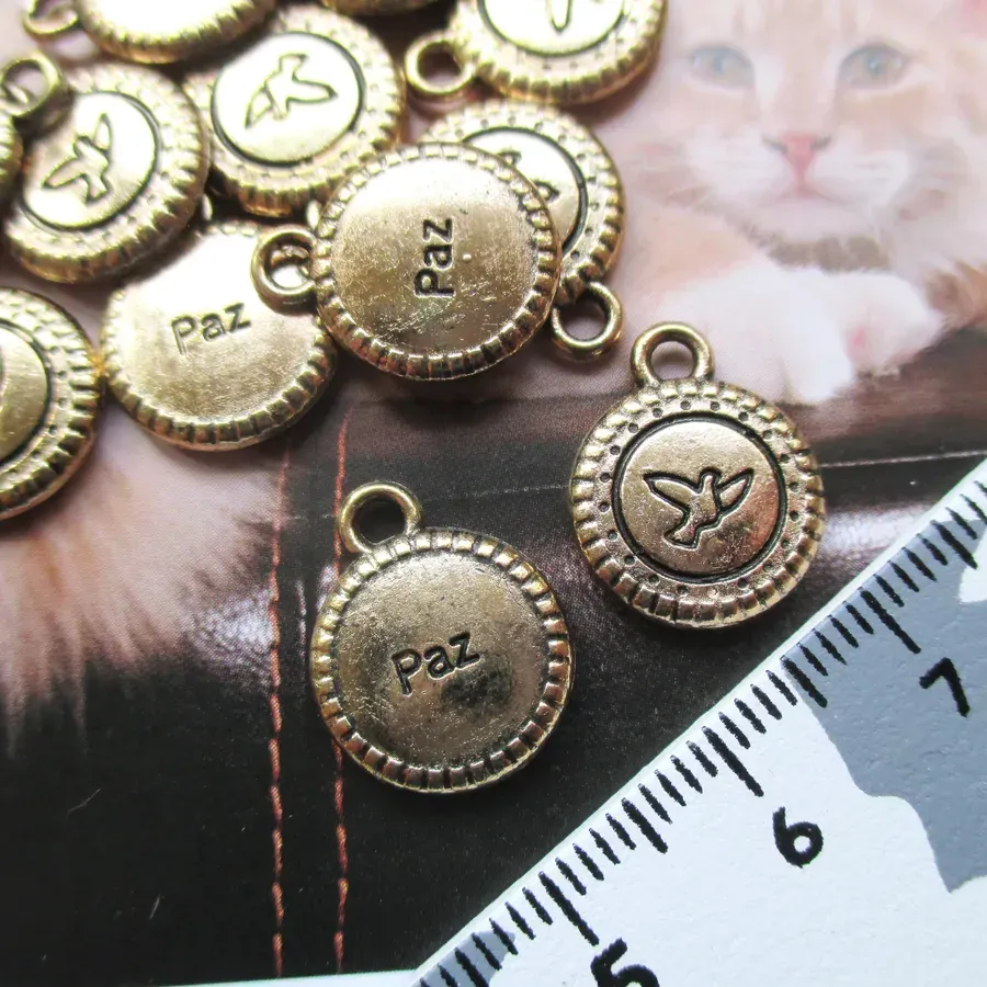 Lote com 36 pendentes de metal. Tema Paz.