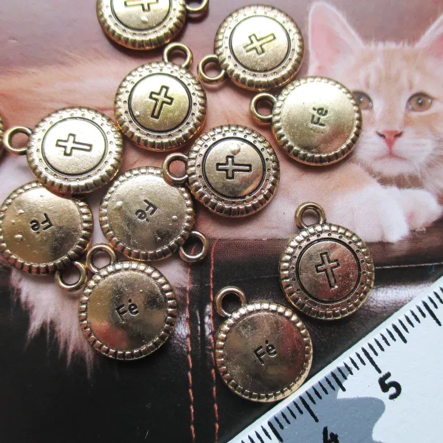 Lote com 36 pendentes de metal. Tema Fé.