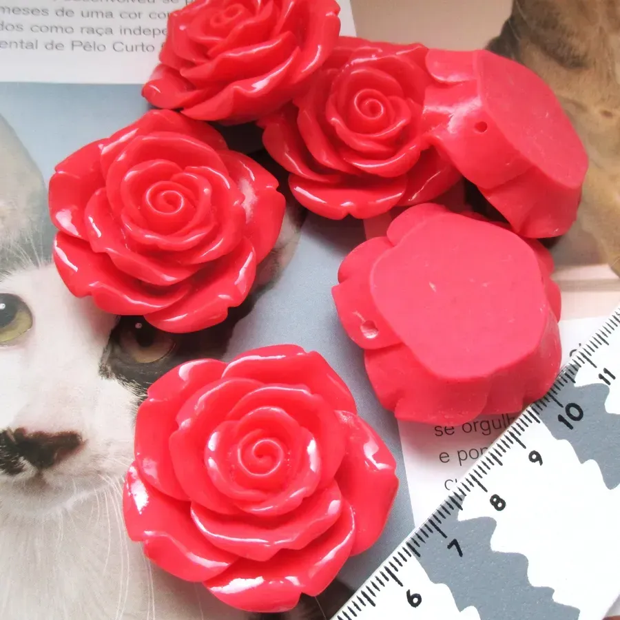 Lote com 6 flores em plástico com furo para passar fio. Ideal para bandoletes, bijuteria, decoração de acessórios de moda...