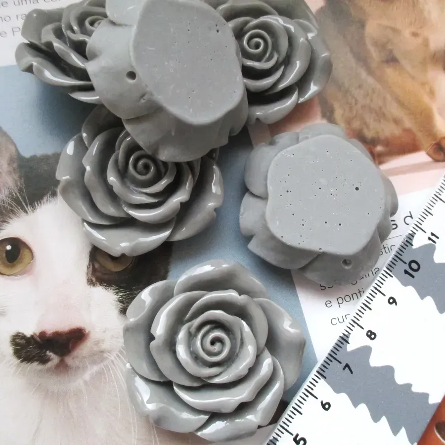 Lote com 6 flores em plástico com furo para passar fio. Ideal para bandoletes, bijuteria, decoração de acessórios de moda...