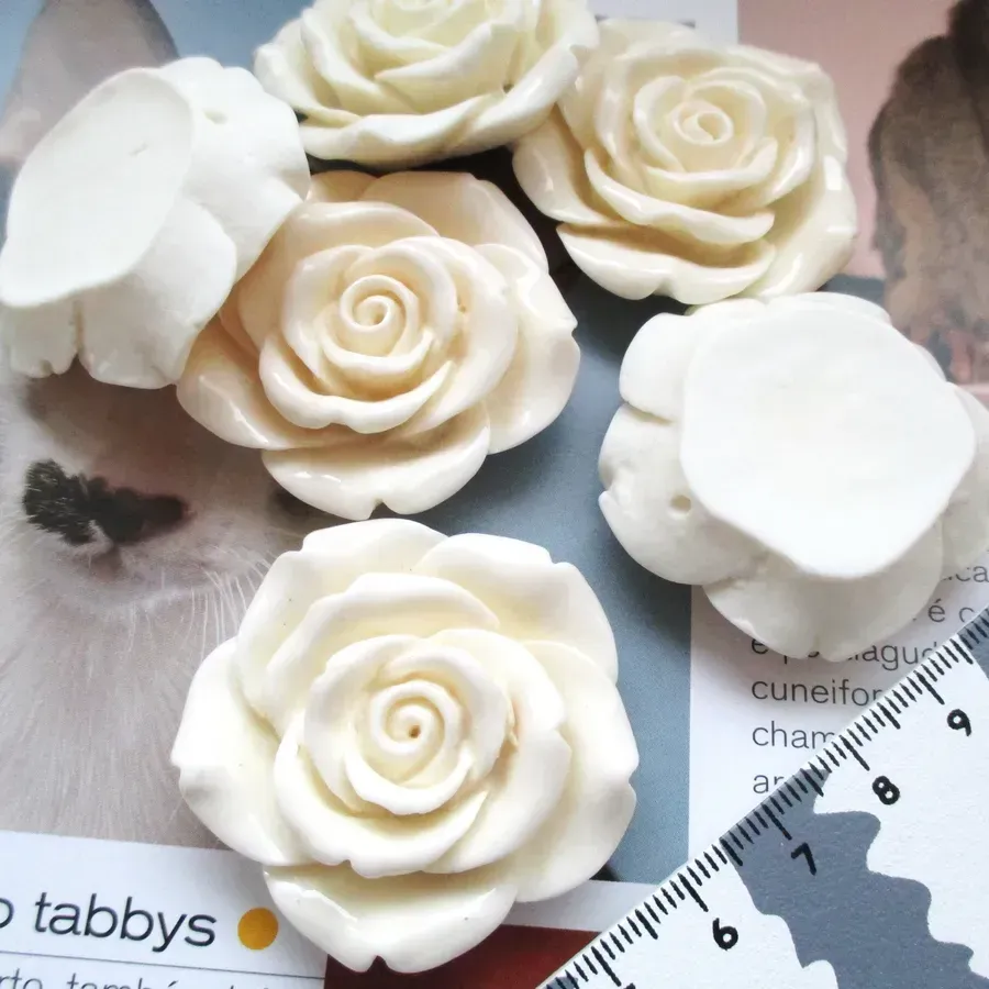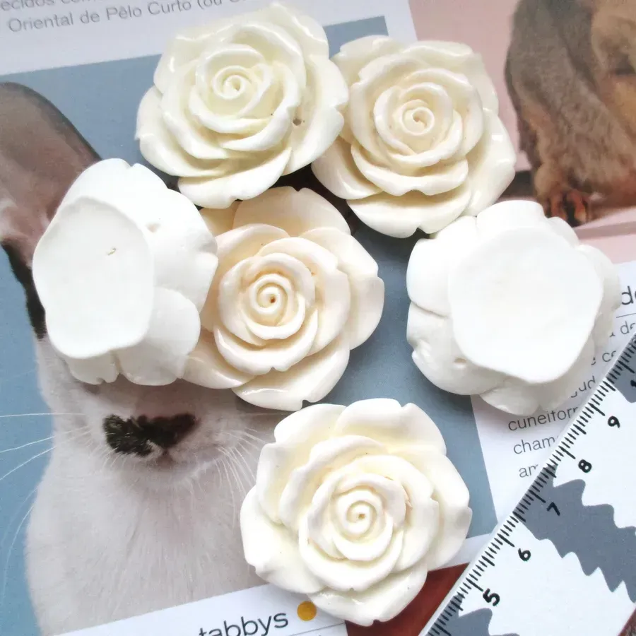 Lote com 6 flores em plástico com furo para passar fio. Ideal para bandoletes, bijuteria, decoração de acessórios de moda...