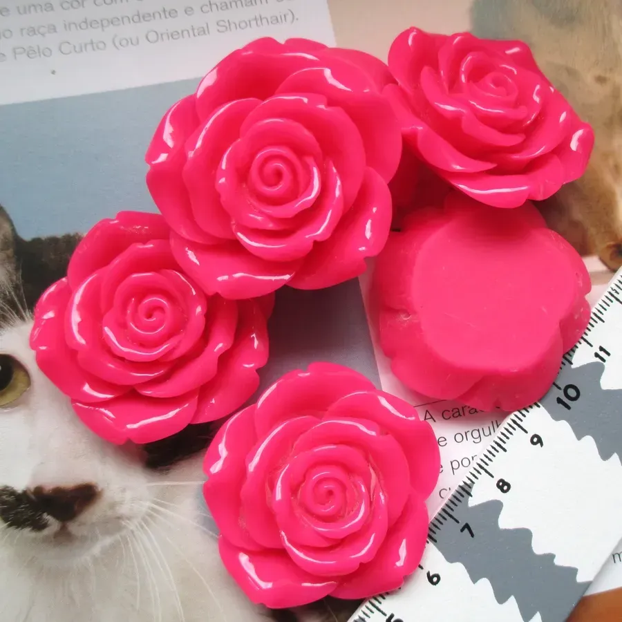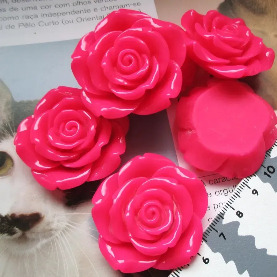 Lote com 6 flores em plástico com furo para passar fio. Ideal para bandoletes, bijuteria, decoração de acessórios de moda...
