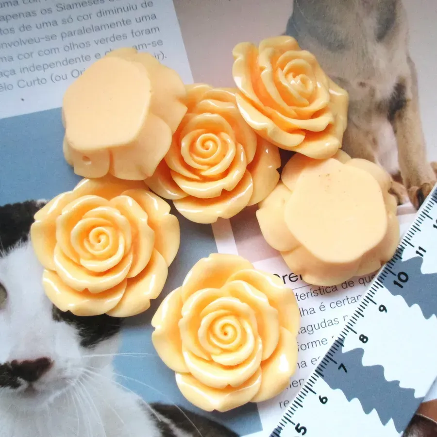 Lote com 6 flores em plástico com furo para passar fio. Ideal para bandoletes, bijuteria, decoração de acessórios de moda...