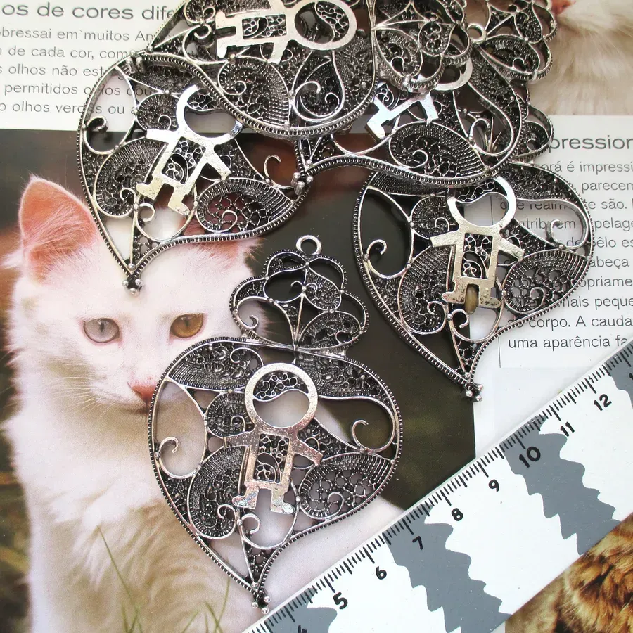 Lote com 5 pendentes em forma de coração com menino.