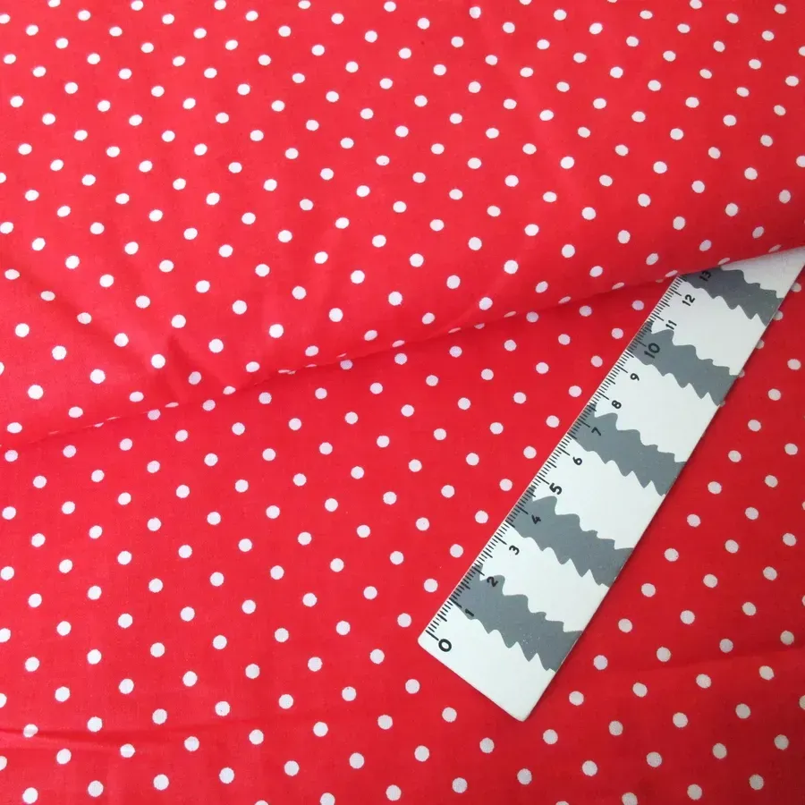 Tecido com bolinhas brancas em fundo de cor vermelho.