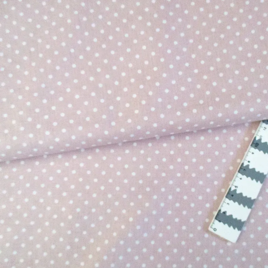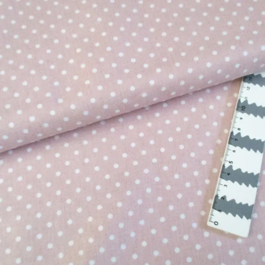 Tecido com bolinhas brancas em fundo de cor de rosa.